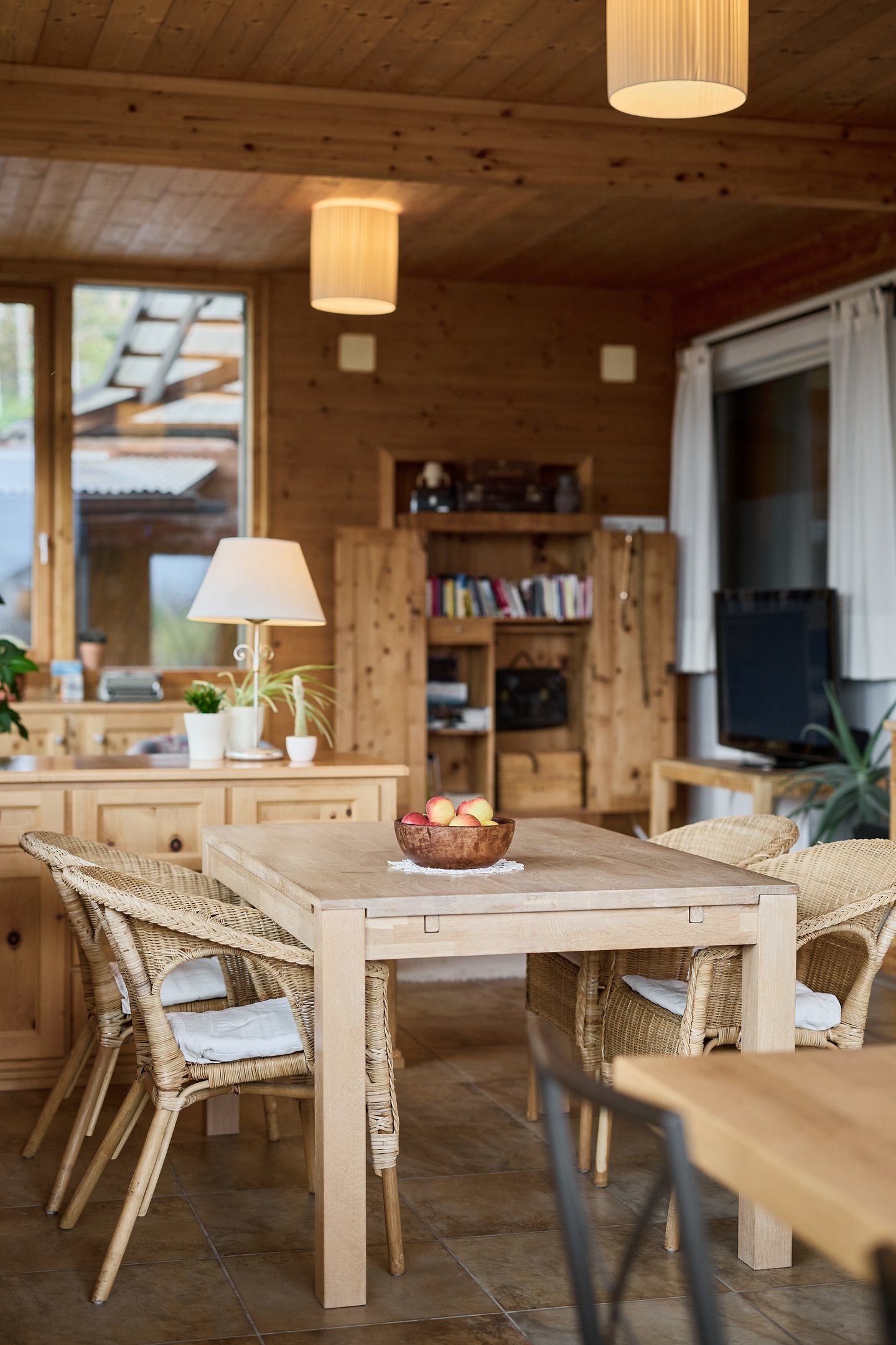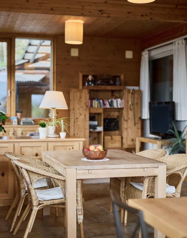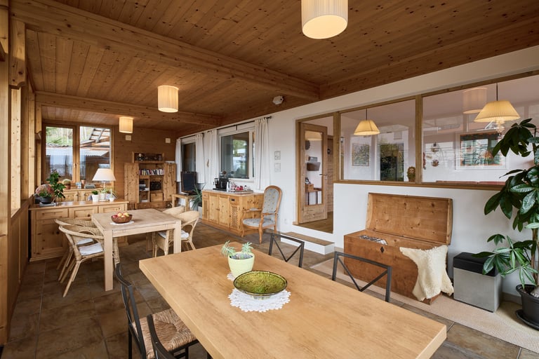 Unsere Terrasse/Wintergarten ist der Mittelpunkt des Hauses. Sie bietet sonnige und schattige Plätze, ganz ohne Programm. Hier geht es um Entspannung: lesen, plaudern, ein Glas Wein genießen – oder einfach nichts tun.