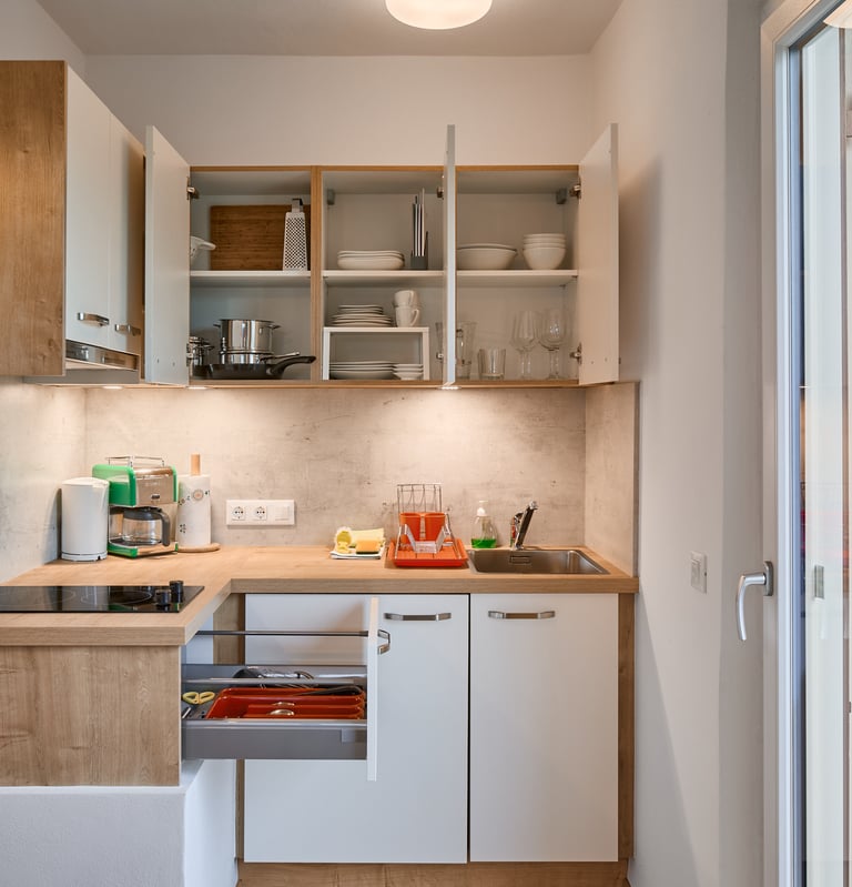 The furnishings of our seven holiday apartments combine a cosy blend of Mediterranean and Alpine elements.